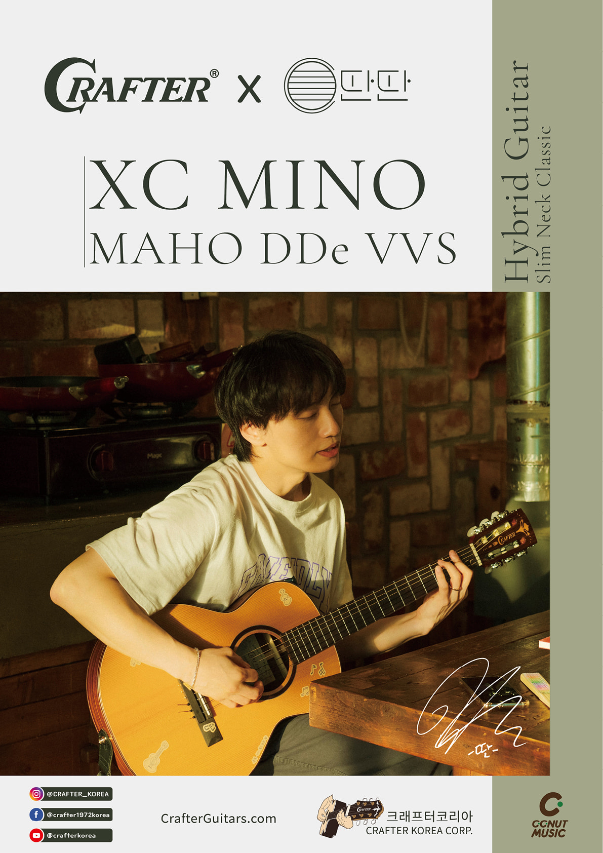 크래프터X윤딴딴 음악에 진심인 두팀이 만나 제작된 새로운 유형의 하리브리드 기타는, 클래식바디에서 연출되는 따스한 음색과 어쿠스틱 기타의 넥에서 느껴지는 편안하고 컴팩트한 연주감이 돋보이는 악기입니다.