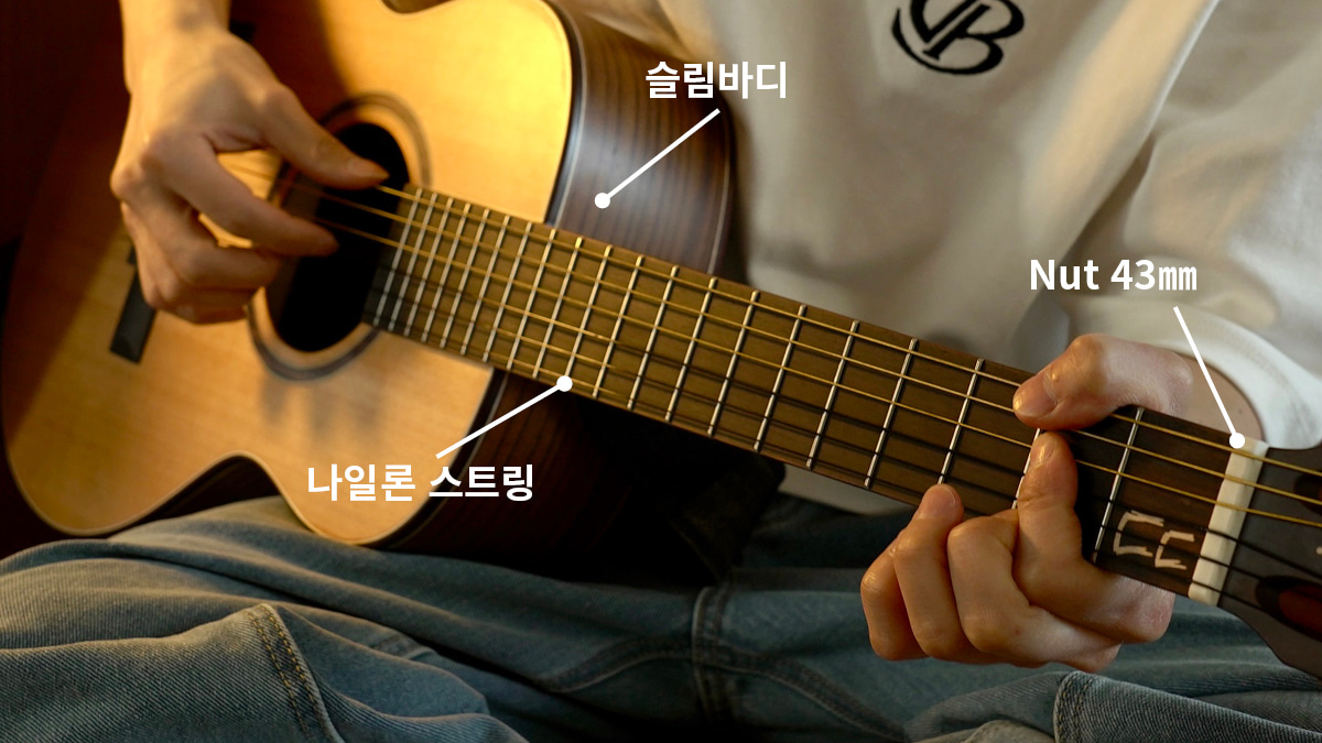 손이 아파 기타 배우기 첫걸음인 어려운 분들께도 적당한 악기입니다 . 윤딴딴 시그니처 기타를 통해 편안한 연주감과 따스한 음색을 즐겨보세요.
