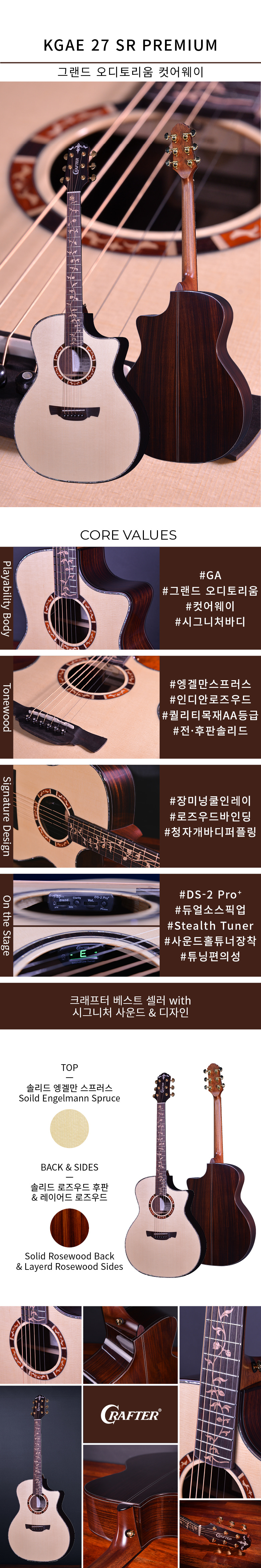 크래프터 KGAE 27 SR PREMIUM 탑백솔리드 EQ픽업 국산기타
