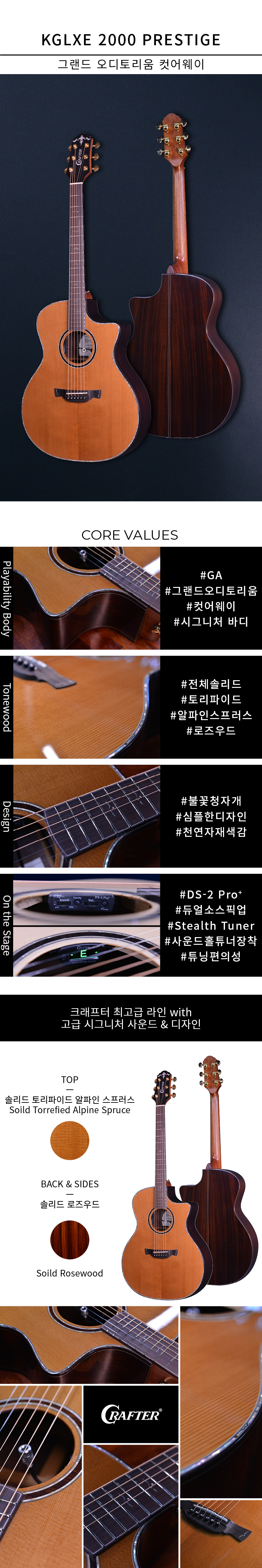 크래프터 올솔리드 KGLXE 2000 PRESTIGE EQ픽업 최고급 국산기타