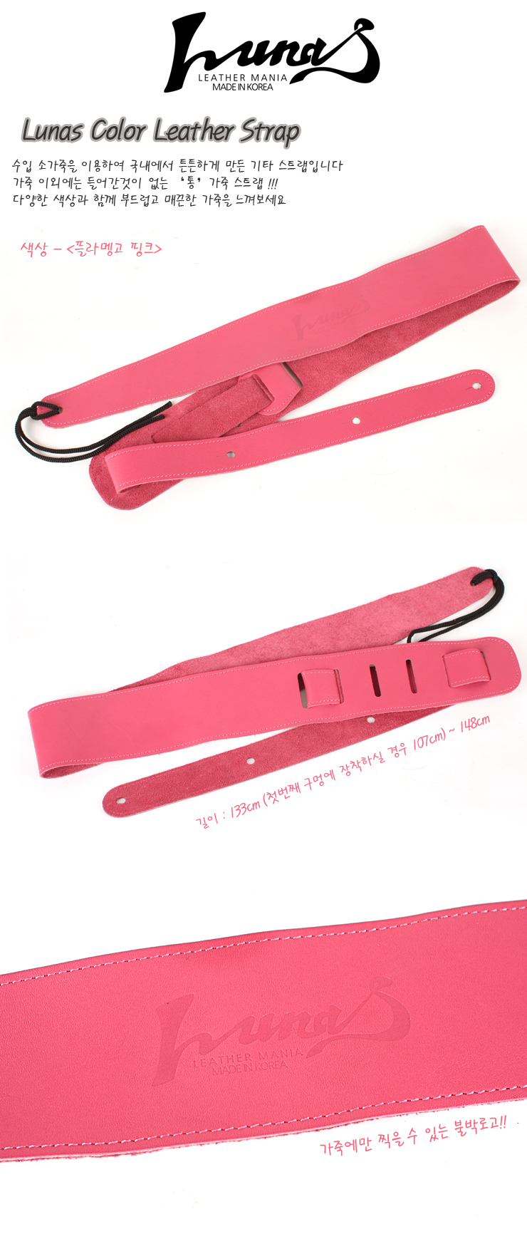Lunas Color Leather Strap (루나스 가죽 멜빵) - Flamingo Pink(플라밍고 핑크)